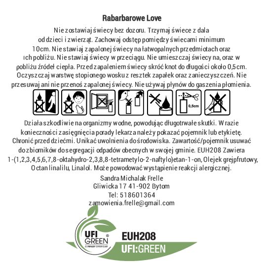 Dodaj do swojego wnętrza odrobinę świeżości i lekkiego zauroczenia z naszą świecą sojową Rabarbarowe Love. To zapach, który od pierwszego zapalenia przyciąga uwagę — rześki, owocowy i pełen charakteru, a jednocześnie miękki i bardzo przyjemny. Idealny na momenty, gdy masz ochotę na coś lekkiego, ale z pazurem.
